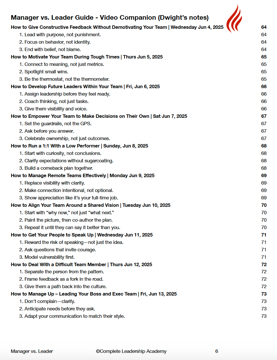 Manager vs. Leader Guide & detailed notes from months of daily videos = $47