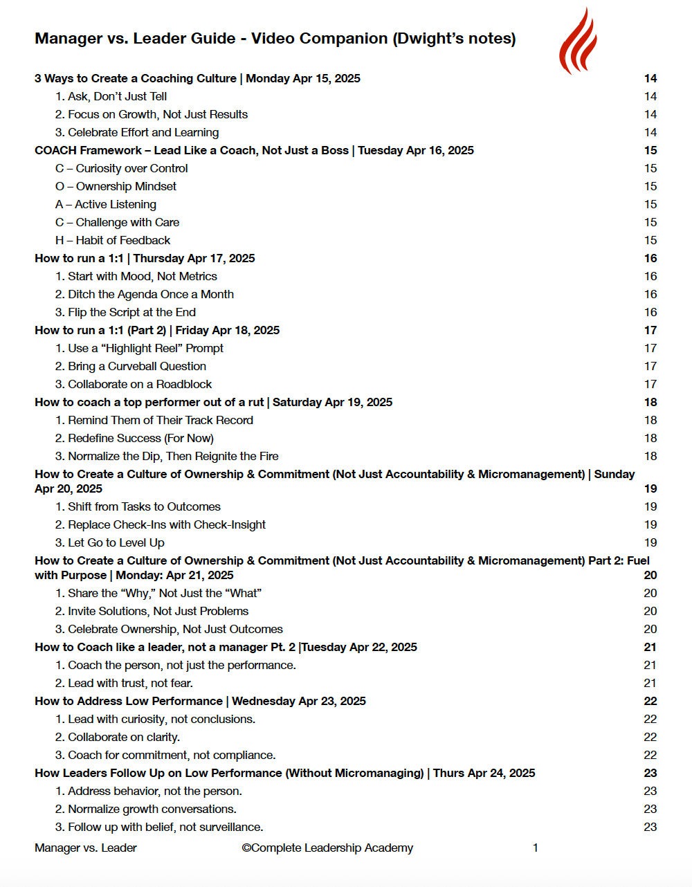 Manager vs. Leader Guide & detailed notes from months of daily videos = $47