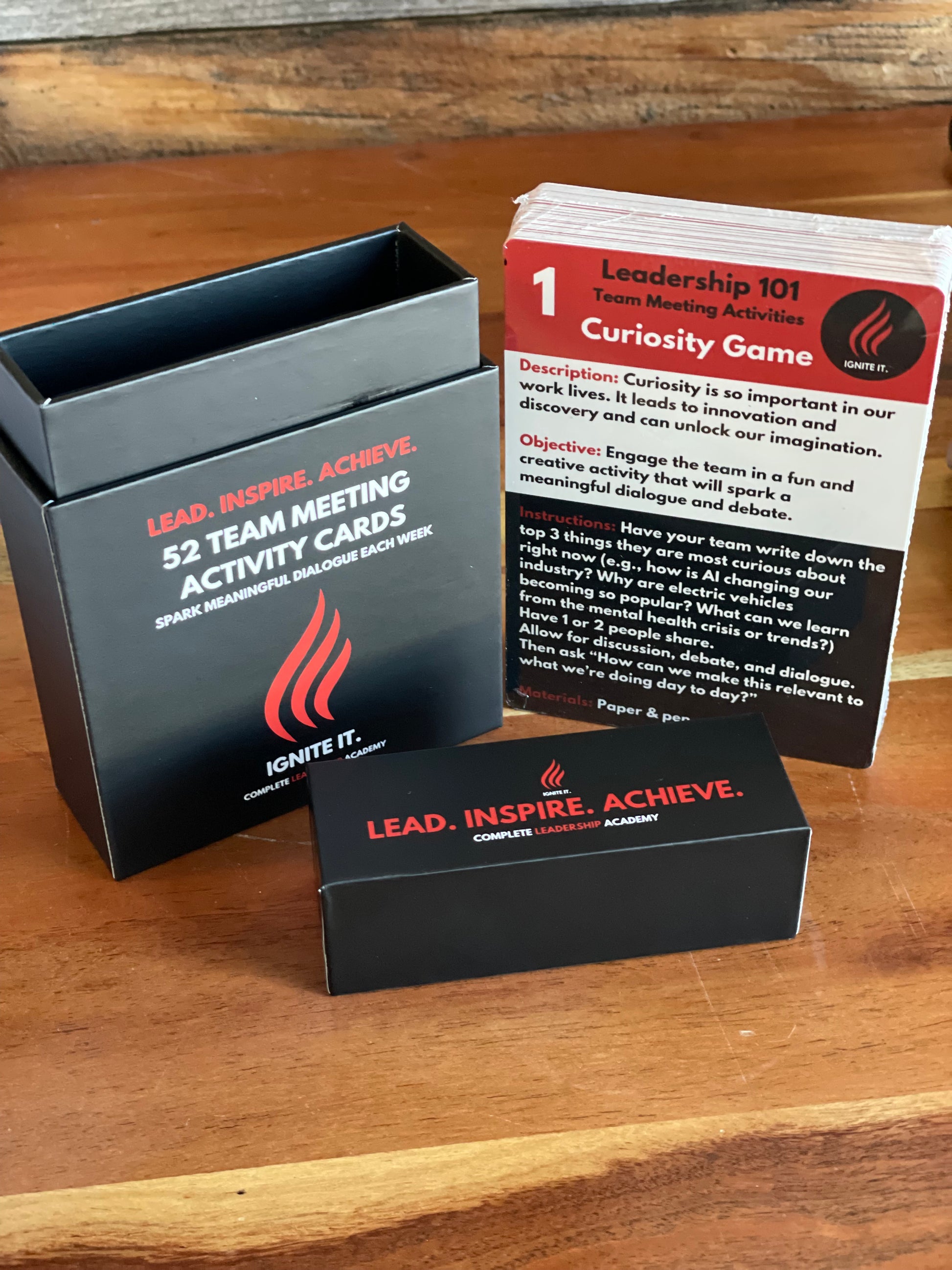 You've seen them in my videos, now you can have your own box of activity cards. Spark meaningful dialogue in team, leadership, and cross-functional meetings, offsites, trainings, and more.